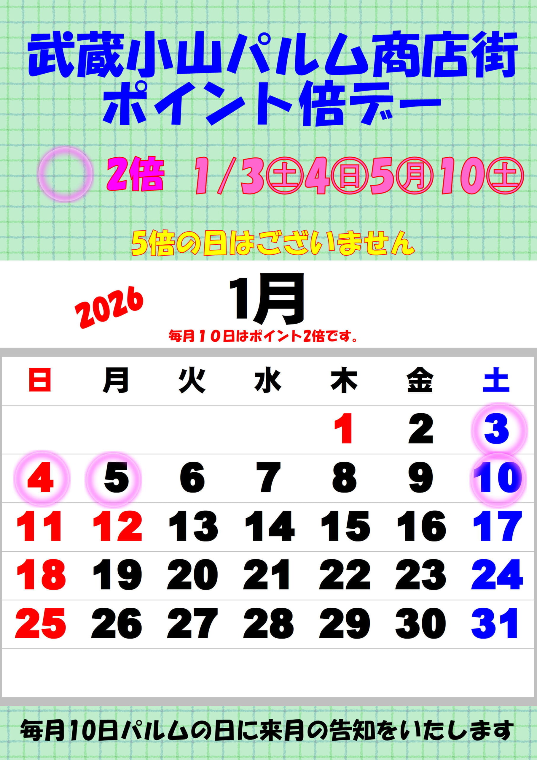 1月のポイント倍スケジュール