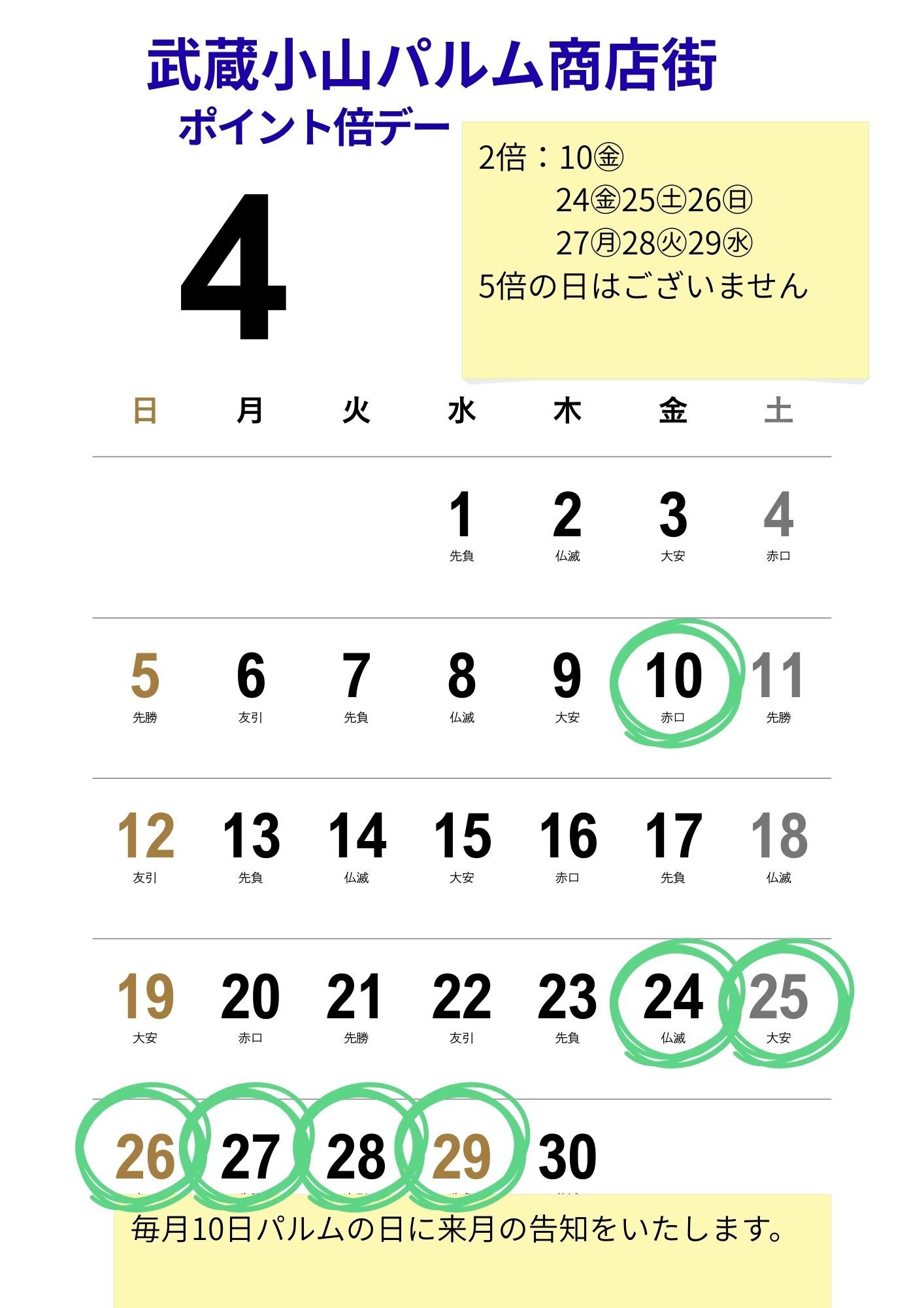 4月ポイント倍スケジュール